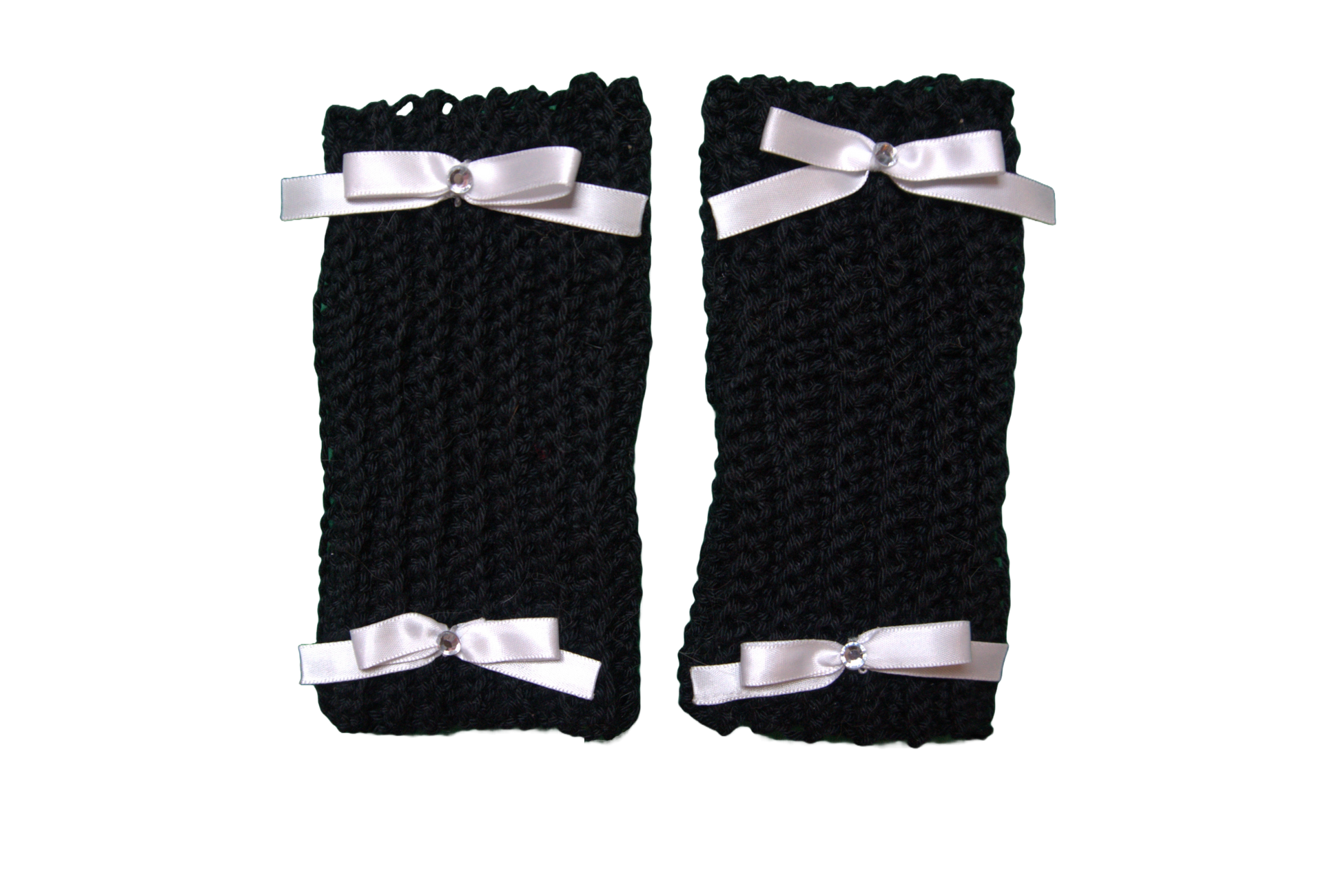 DELILAH SHORT ARM/WRIST WARMERS ☆ (BLACK WITH WHITE BOWS)