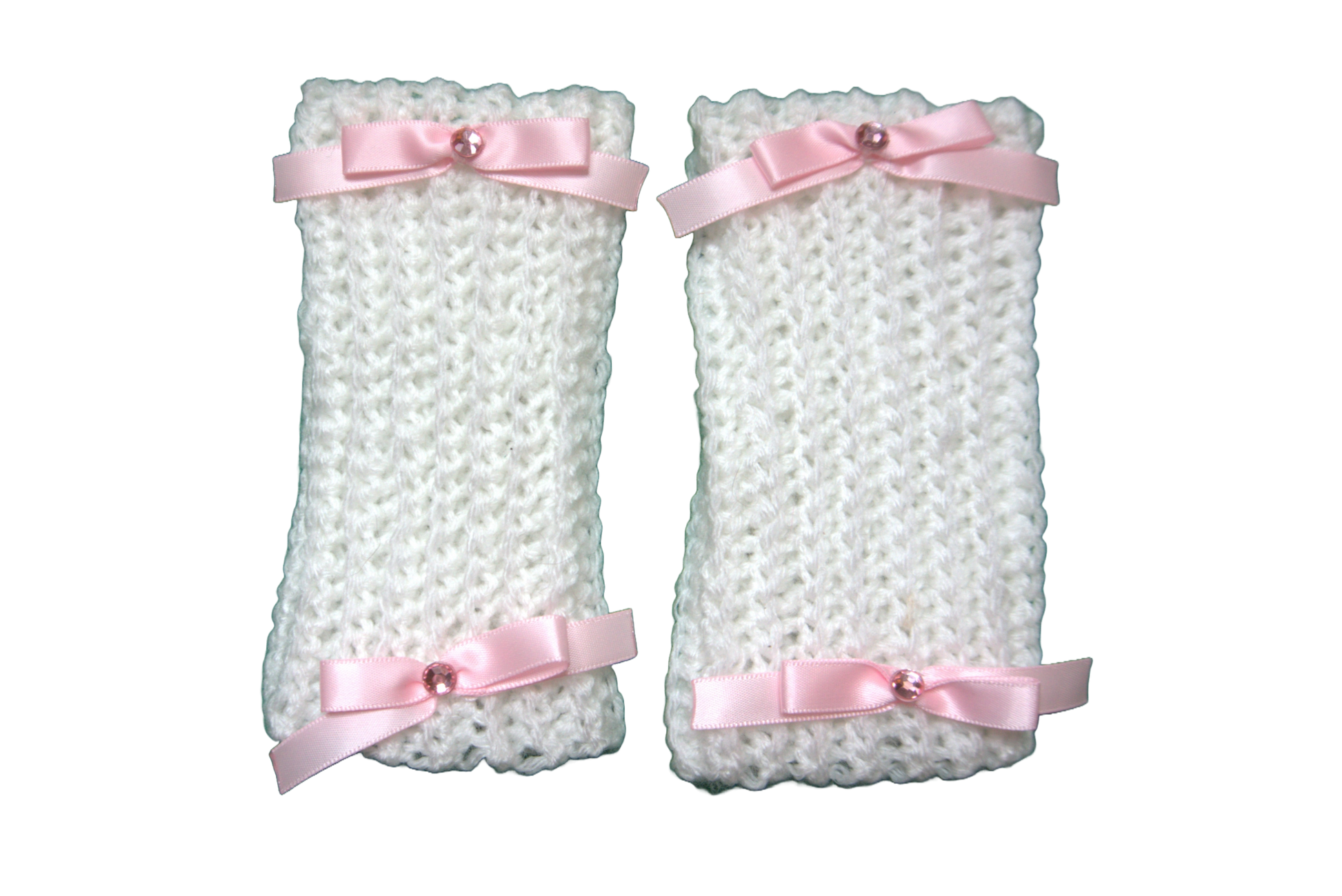 DELILAH SHORT ARM/WRIST WARMERS ☆ (WHITE WITH PINK BOWS)