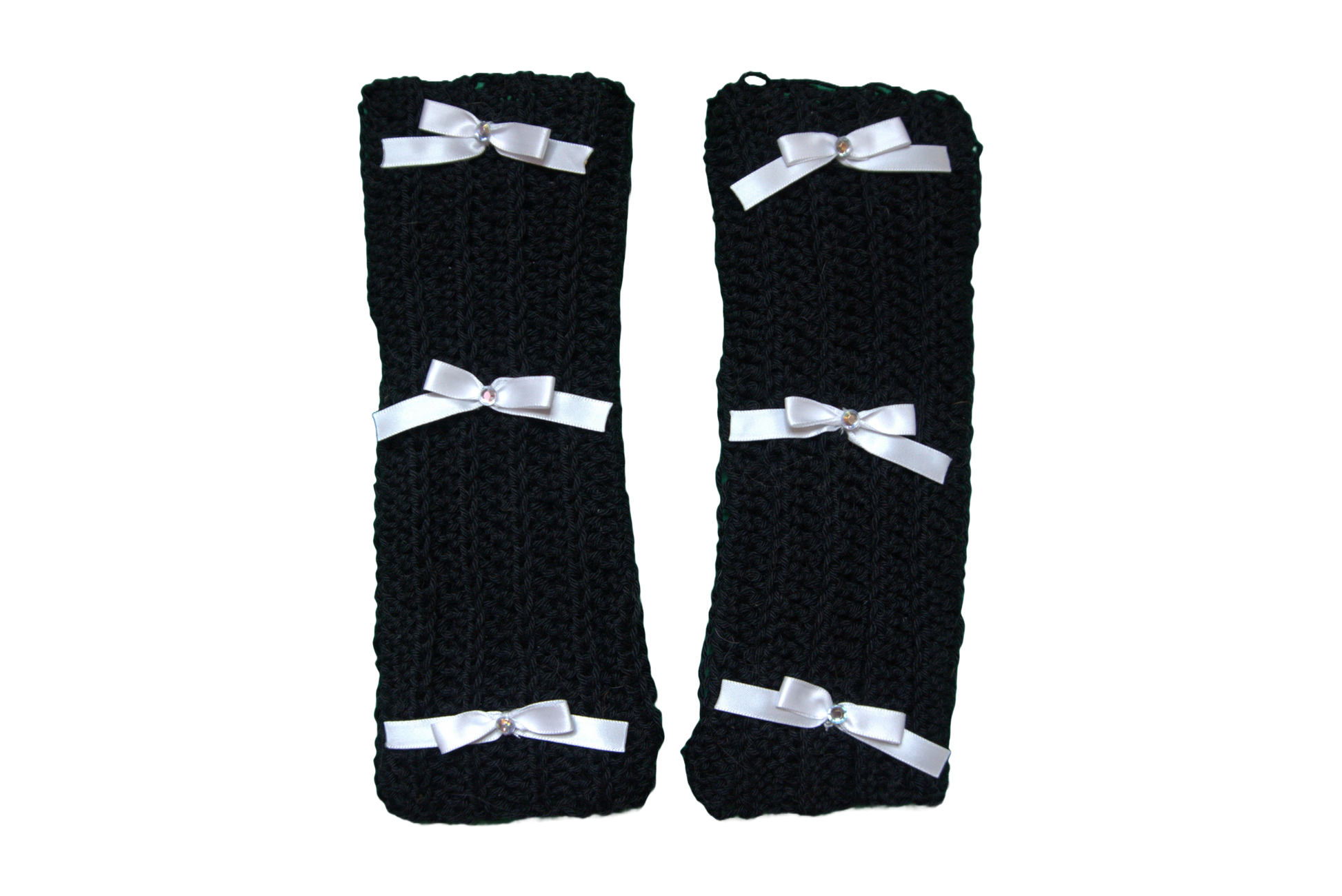 MIMOSA FINGERLESS GLOVES ☆ (BLACK WITH WHITE BOWS)
