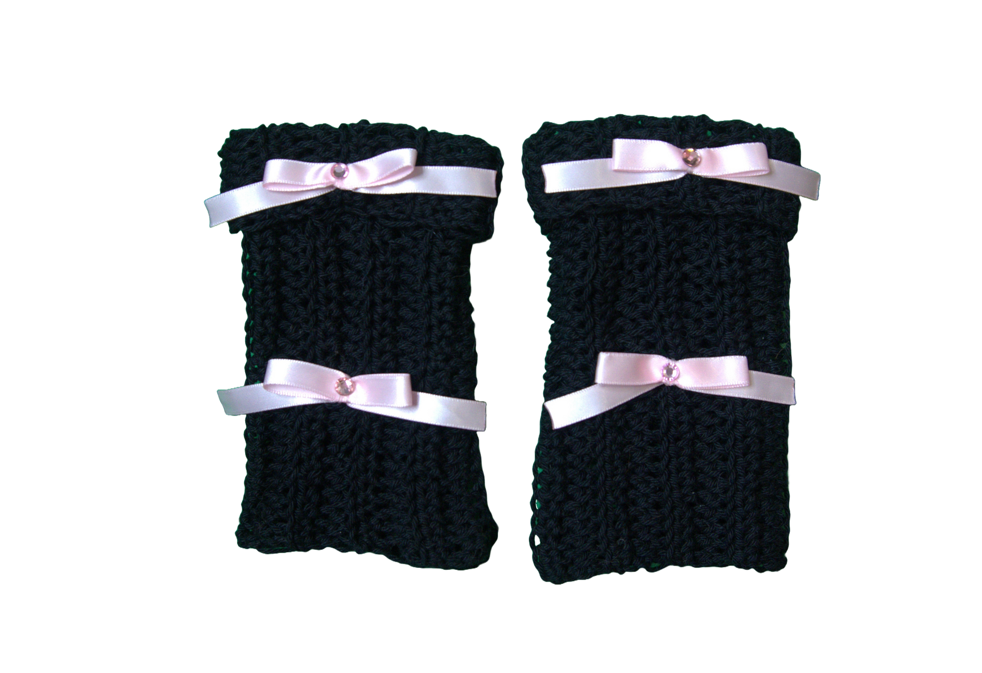LAYLA SHORT FINGERLESS GLOVES ☆ (BLACK WITH PINK BOWS)